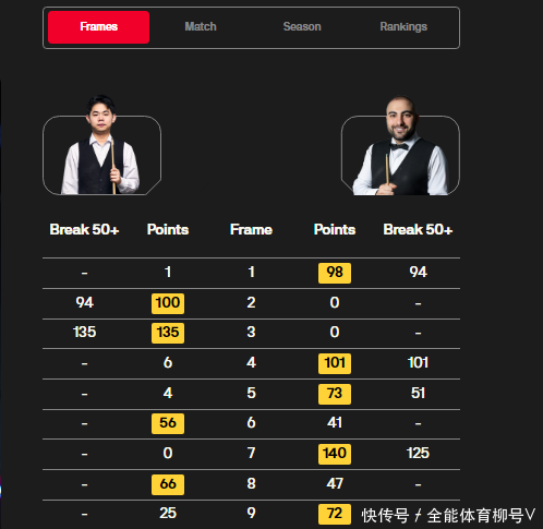 来到2025年斯诺克世界公开赛战胜第一轮,袁思俊的对手是“伊朗一哥”瓦菲-阿尤里。这场比赛,袁思俊的开局非常霸气,单杆94分和135分取得2-1领先优势。但在接下来的比赛中,阿尤里3-2反超比分,并以4-3赢得赛点。袁思俊顽强追成4-4。决胜局,袁思俊以25-72输掉,最终以4-5无缘晋级,非常遗憾!