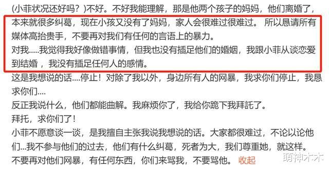 马筱梅同时自曝自己身体不舒服,去泰国前就很不舒服,现在还要面临各种舆论和生活变故,她似乎承受了很大压力。她言辞激烈表示,自己没有做错任何事,没有插足任何人的感情,最后要给媒体下跪,拜托大家高抬贵手。